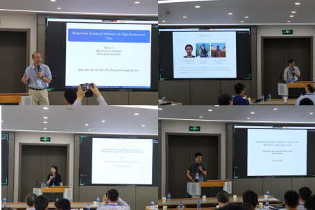 16日上午,大会报告由曼尼托巴大学王力群教授、北京工业大学徐大川教授、中国科公司刘歆研究员和河北工业大学樊军教授主持。大会邀请了宾夕法尼亚州立大学Eberly Family讲座教授、国际著名统计学家李润泽教授进行报告。其工作为高维数据开发了一种有效的无模型推断程序。该工作通过充分降维框架重新表述了假设检验问题,提出了一种新的检验统计量。此外,他还提出了多重检验程序,并建立了理论保证。