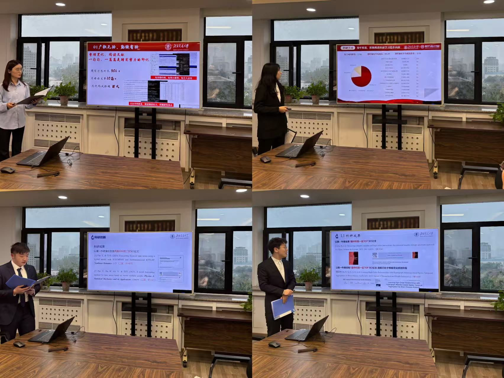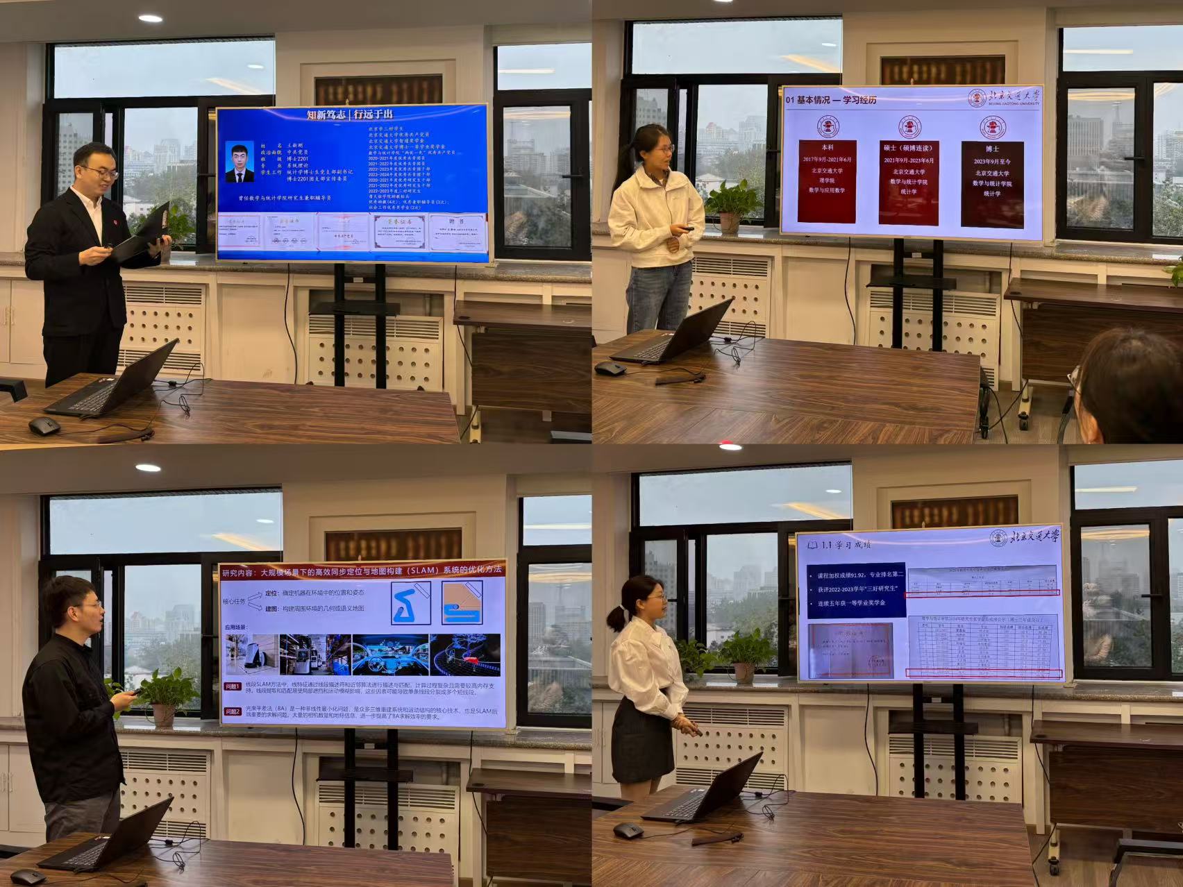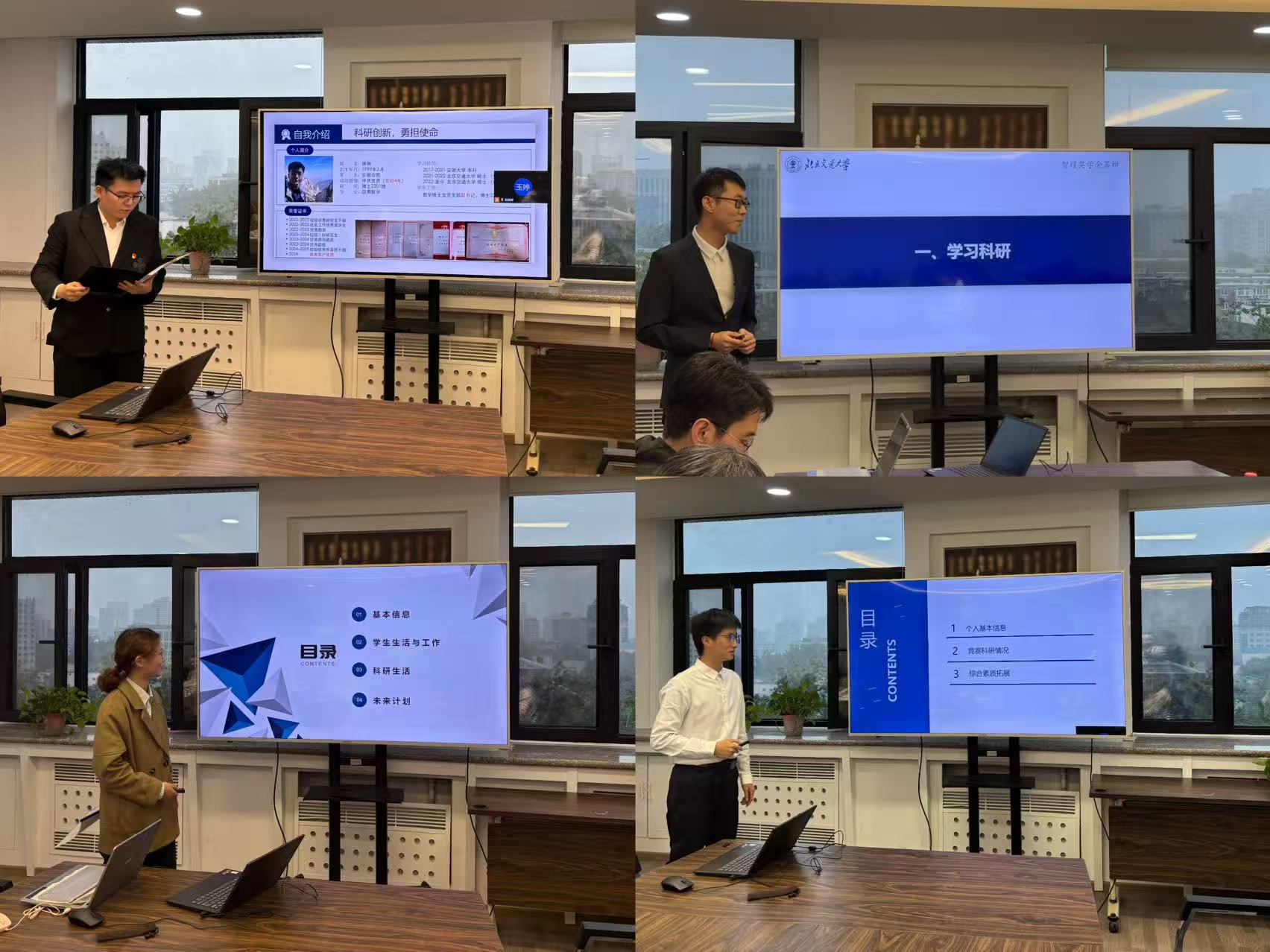 首先,经前期个人申报、资格审核,共有8名博士生、7名硕士生进入此次国家奖学金答辩环节。15名候选人依次上台,围绕思想表现、学业成绩、科研竞赛、社会实践、员工工作、综合发展等方面进行个人陈述,充分展现出公司研究生扎实的专业基础与积极向上的学术风貌。